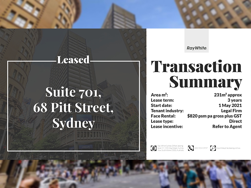 Face Rental: $820 psm pa gross plus GST
