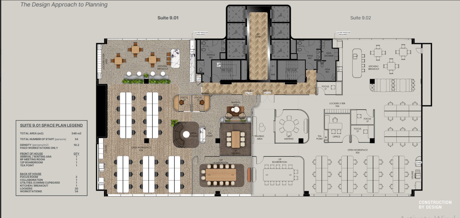 - Reception, 1 x 6p meeting room, 12-14p boardroom