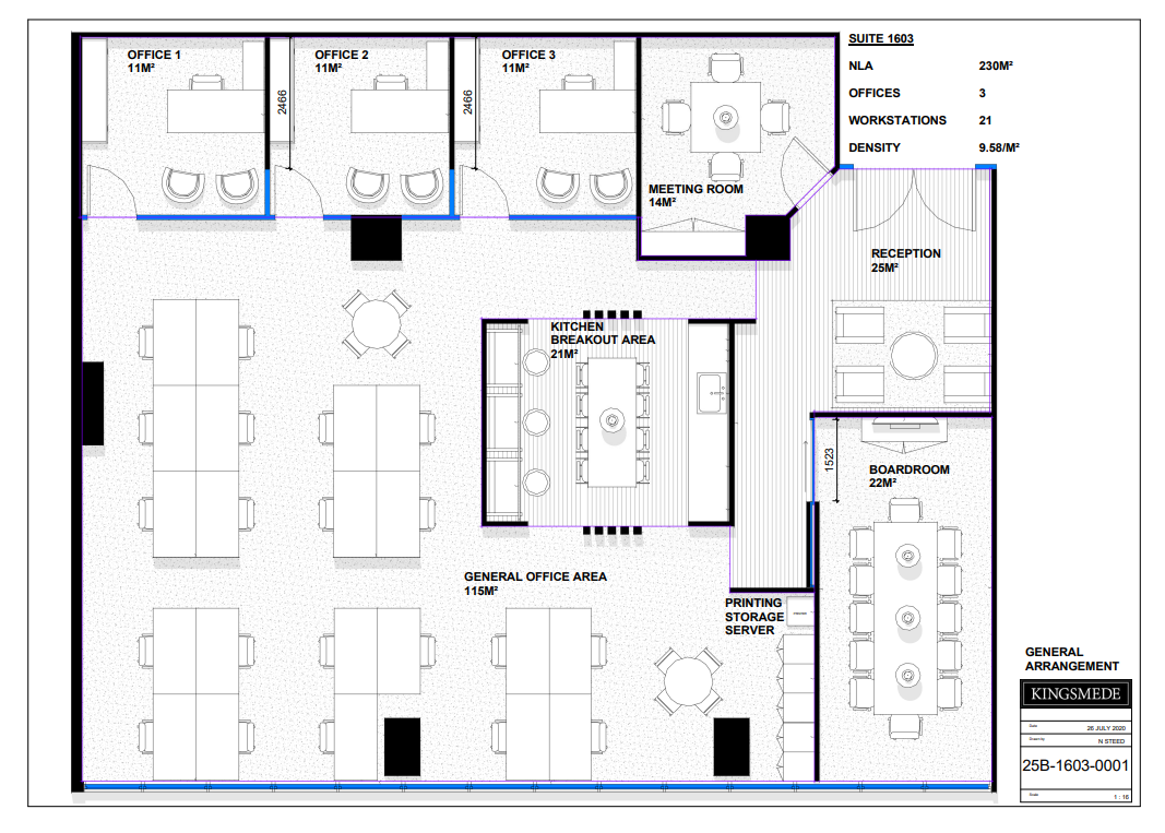 - Fitted with 3 offices, 21 W/S, 4 pax meet, 12 pax boardroom, kitchen/breakout area, reception wait area, storage, Great CBD aspect