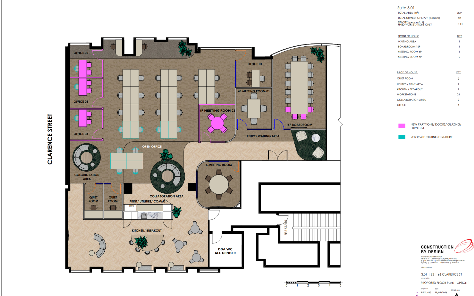 - Arrival area, 16p boardroom, 3 meeting rooms, 4 offices