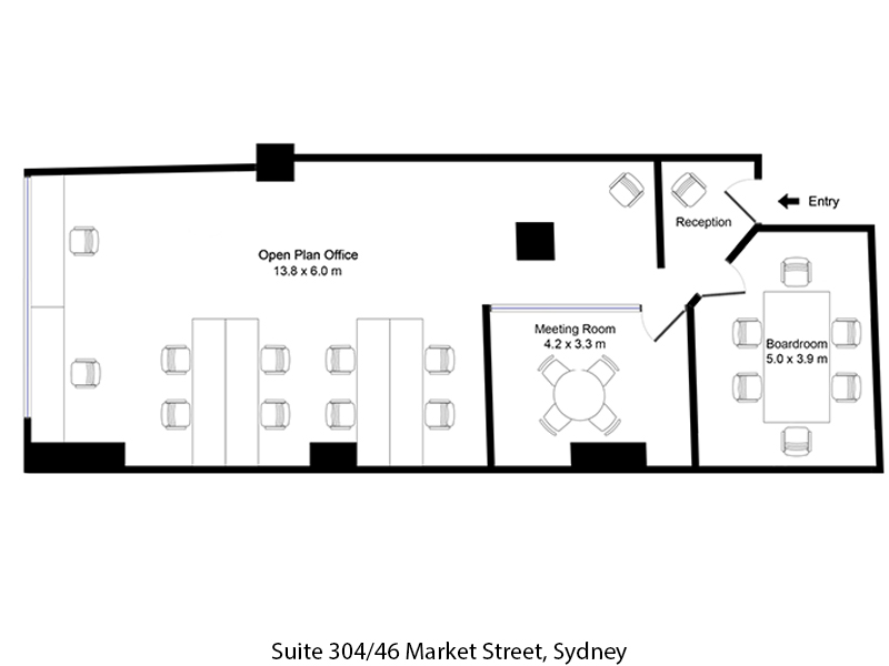 46 Market Street is located on the corners of York, Market and George Streets with the Commonwealth Bank on the ground floor. The building underwent a major refurbishment in 2005 and 2006 including lift upgrades, new foyer, new tea rooms, new bathrooms and refurbished floors. There are male and female showers in the basement.