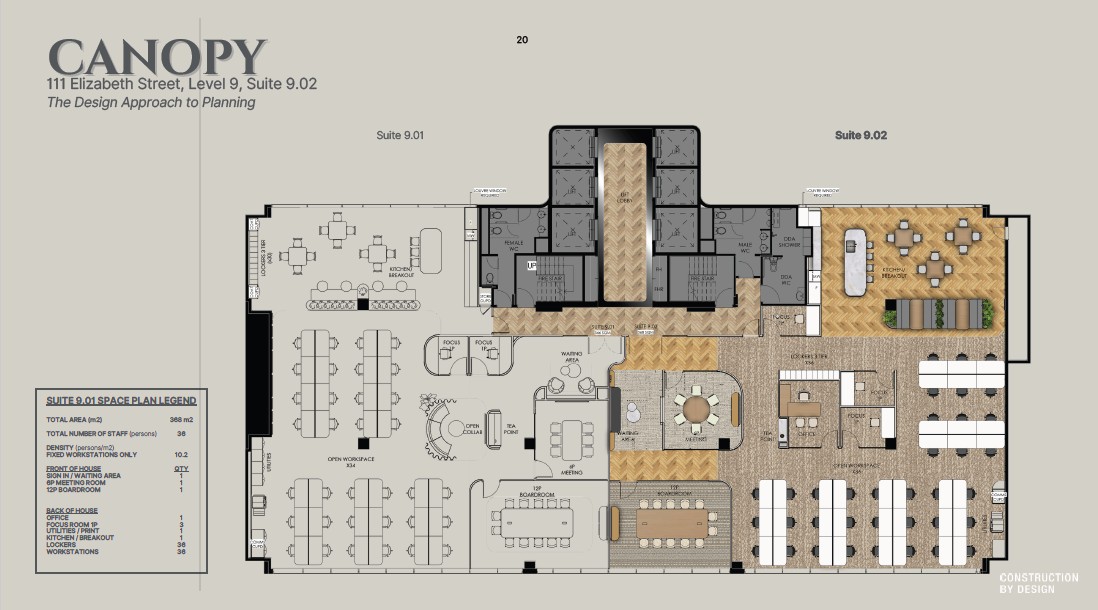 - 36 Open plan workstations, 1 office, 2 focus rooms.