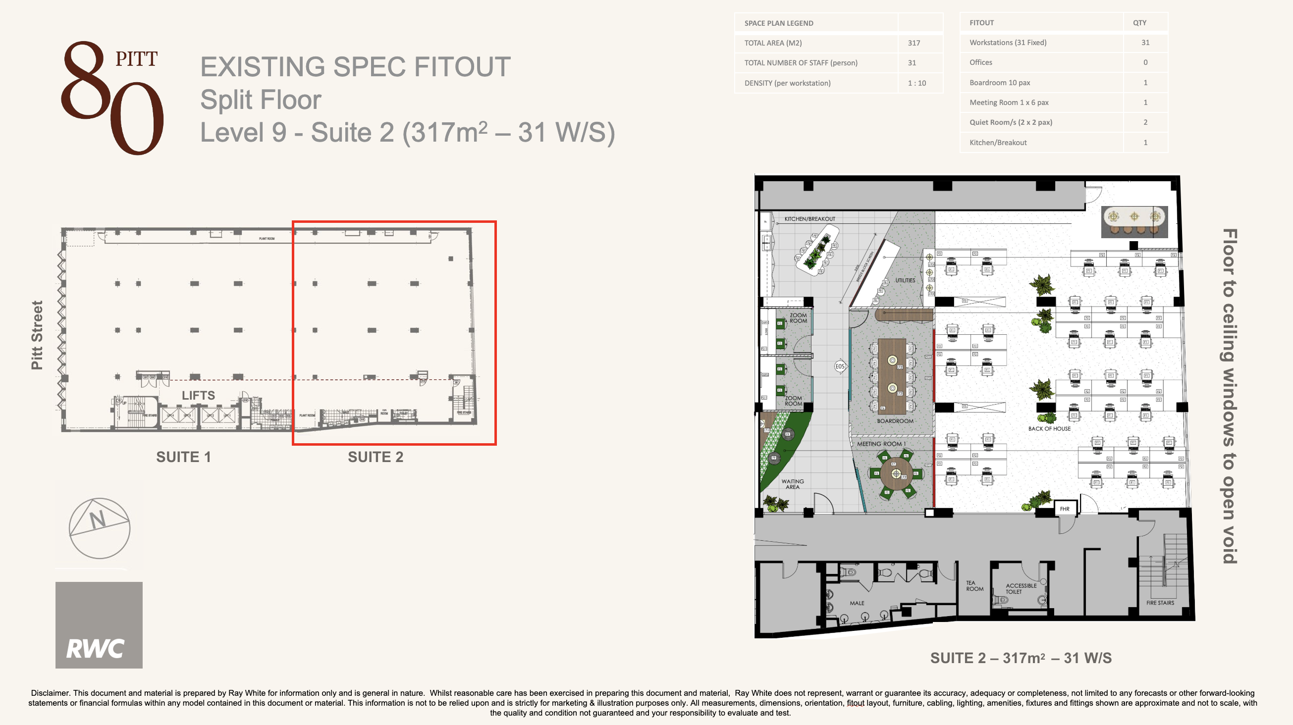 - Good natural light with floor to ceiling windows.
