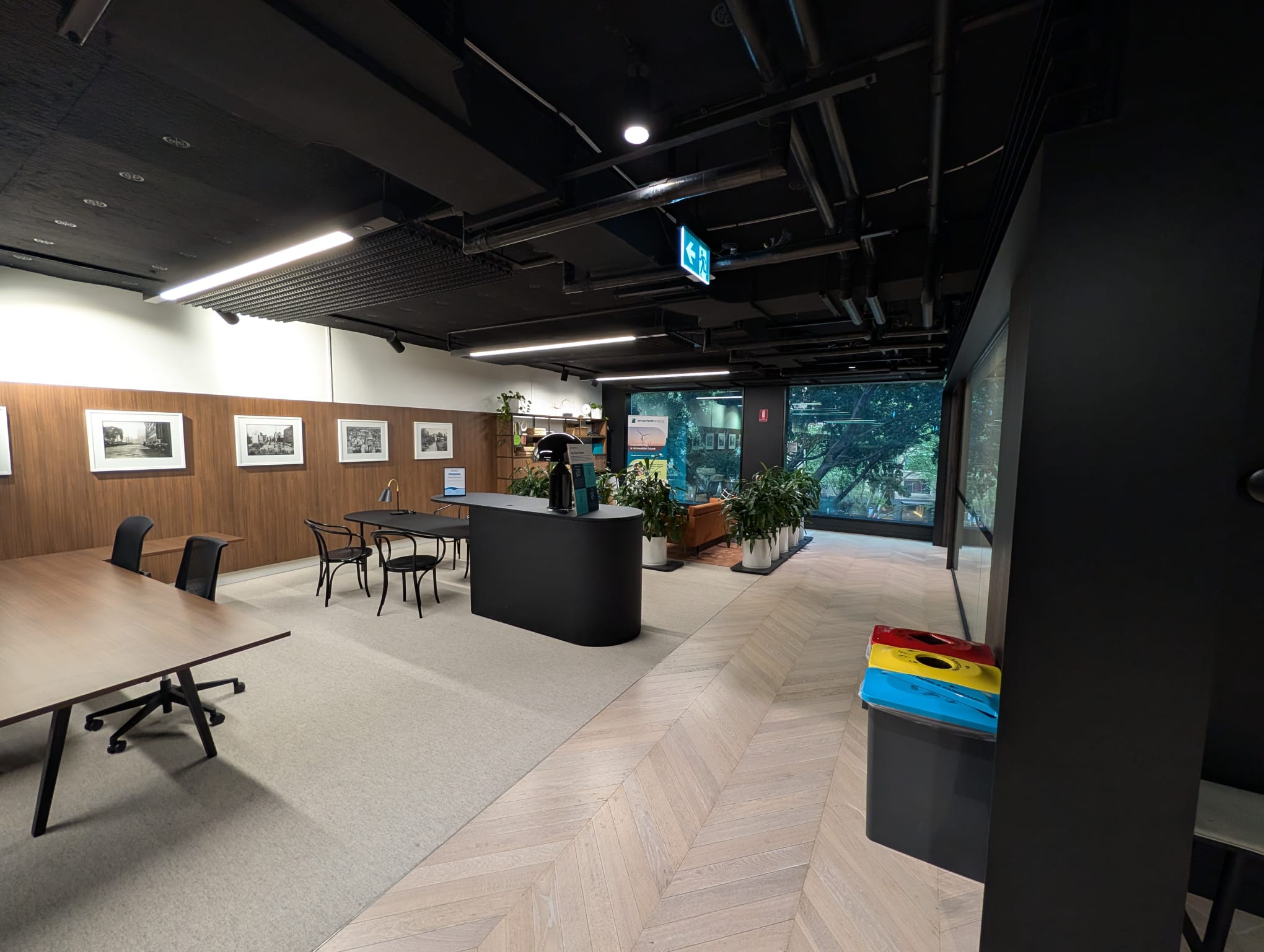 - Fitted with 24 workpoints (room for 28), 12 pax Boardroom, 6 pax meeting room, breakout couch area.