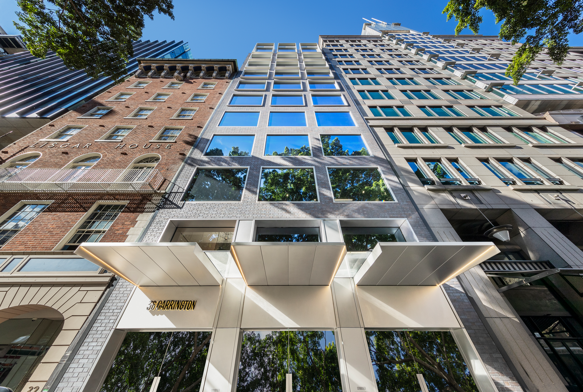 Located opposite Wynyard Park, between Margaret and Wynyard St. Conveniently located to Menzies Hotel, Wynyard Station, MetCentre foodcourt. Premium finishes, exposed ceilings, chilled beam AC, & polished concrete floors. Basement EOT with towel service.