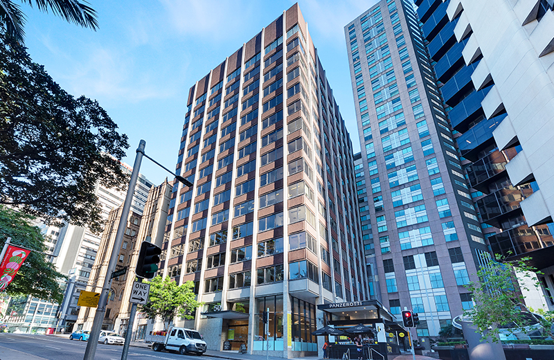 50 Margaret Street overlooks Wynyard Park positioned on top of Wynyard train station. Excellent natural light and expansive views, end-of-trip showers, and lockers in the basement. 4.5 star NABERS water rating. 5-star NABERS Energy Base Building rating